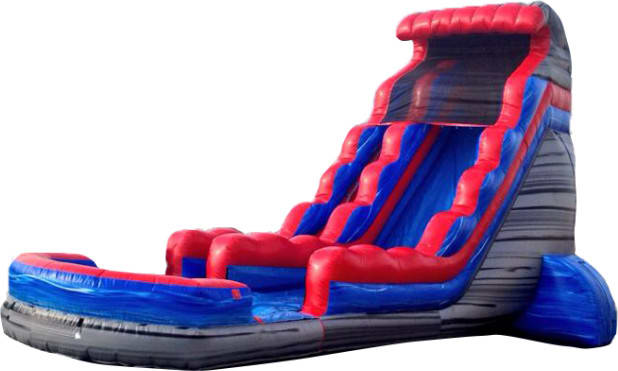 The 22' Tall Rocky Marble Slide is great for kids and adults alike. One of the biggest Water Slides you'll see around. The Participants come screaming down into a large pool. Sure to be the hit of your next event or party. 1 electrical outlet and 1 water outlet is required.